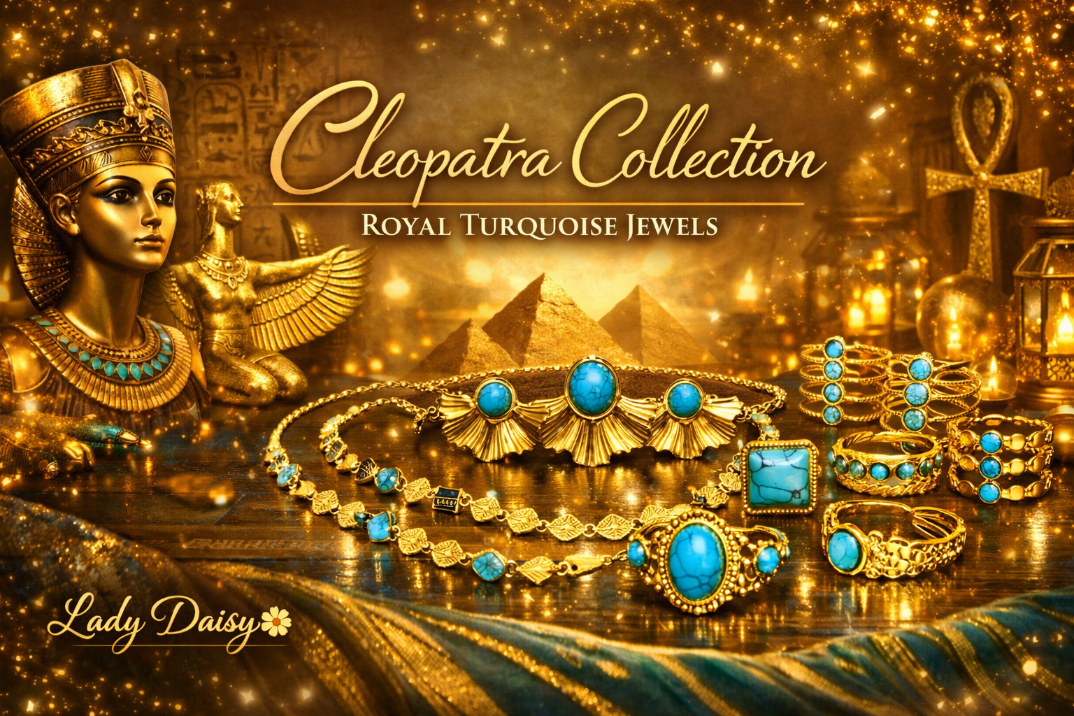 Cleopatra Inspired Turquoise Leaves Gold Necklace & Earrings Set